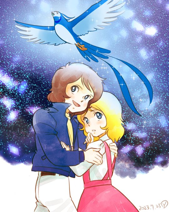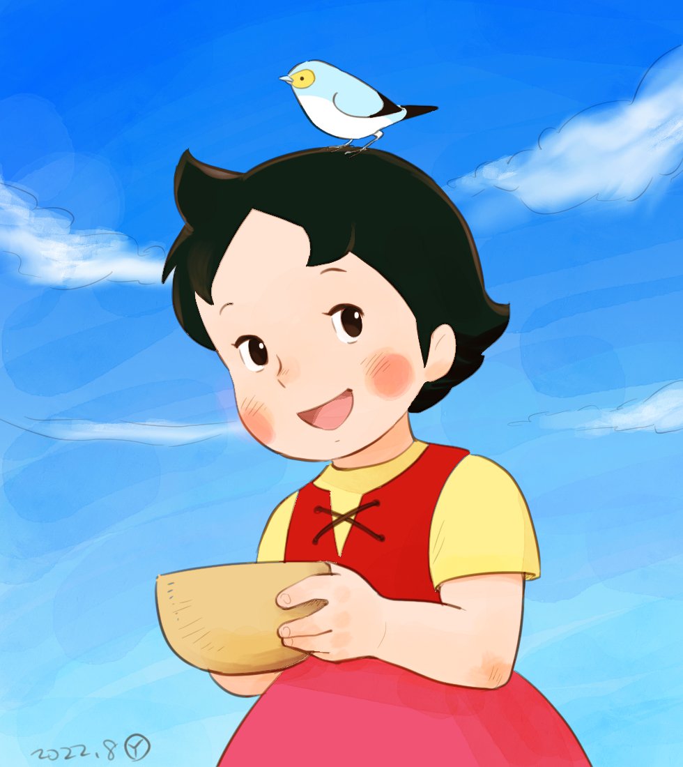 青い鳥で埋め尽くせませんでしたが仕上げるなら今!と思ったので昭和まんがまつりの時に間に合わなかったファンアートです。 キャラデザ芦田豊雄さんだったんですね。 #メーテルリンクの青い鳥 チルチルミチルの冒険旅行