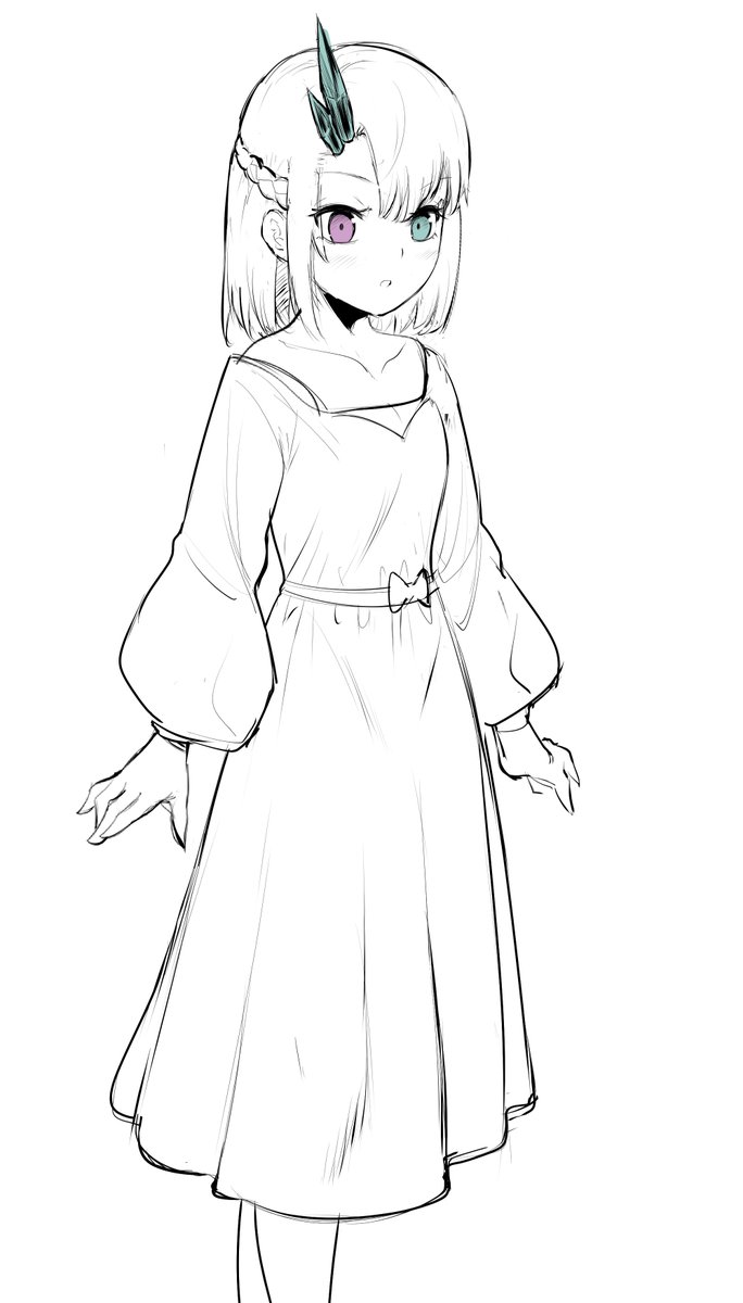 キャラデザラフ② ちょっと頭身高めにぶかぶかの服にしてみた、色々と迷い中ー パズルや脚本・仕様など固まってきたので、キャラデザインの過程とかちょこちょこアップしていこうかと思います。 #illust #indiegame #絵描きさんと繋がりたい