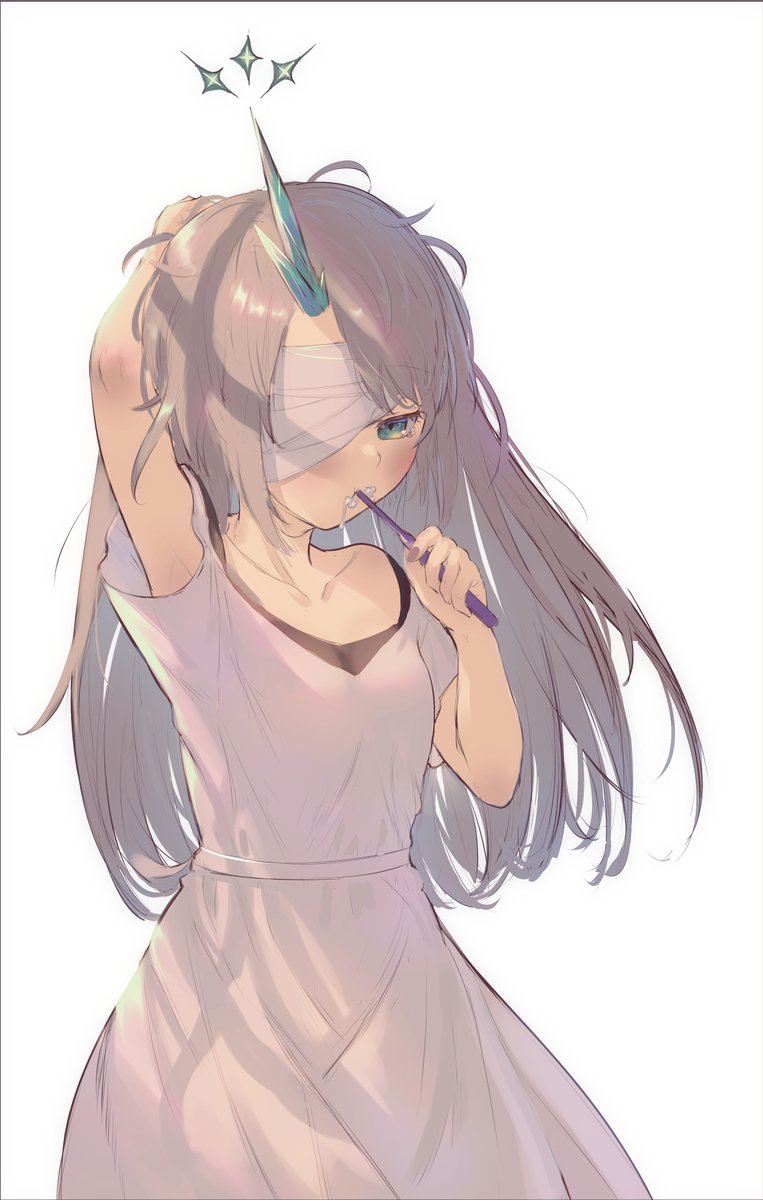 ホラーインディーゲームの主人公⑥ ほぼ完成! ヒヨの額には結晶化した角が生えて星のような光が浮かび上がっています。これはヒヨの能力に関係しています。 #絵描きさんと繋がりたい #ゲーム開発 #3連休はフォロワーさんが増える
