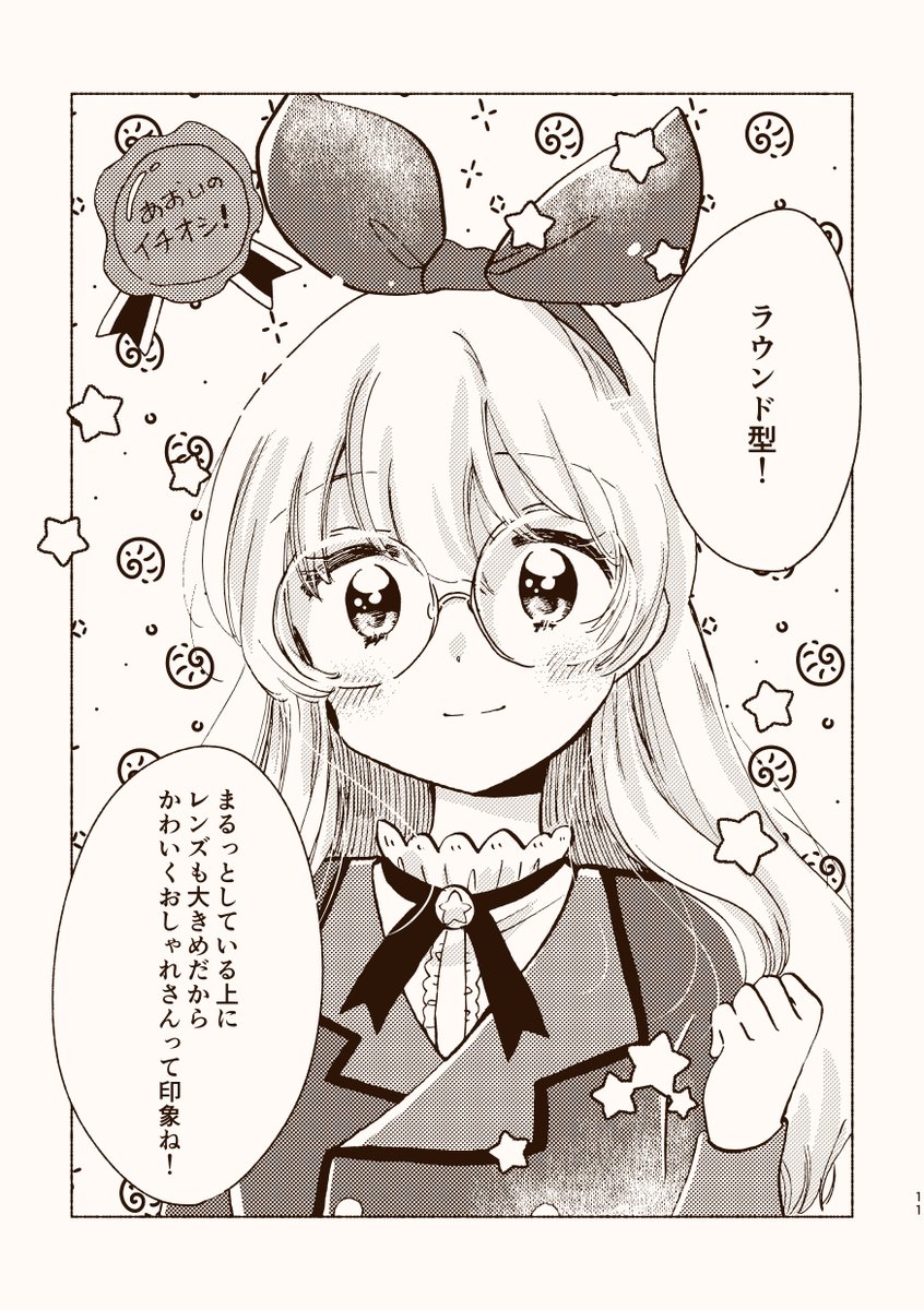 【C102準新刊】 🌄アイカツ!眼鏡合同漫画編「SUNRISE」🌄 卒業目前。とあるオーディションに出るいちごとあおいは、眼鏡の試着をしたり、一緒に帰ったり…。眼鏡LOVE人・伏見さん原作のおいしい眼鏡マンガです。1冊丸ごと描かせてもらいました。 芸カ28発行 #C102 1日目【東ニ50a 星の宮組】500円 twitter.com/ixxf/status/16…