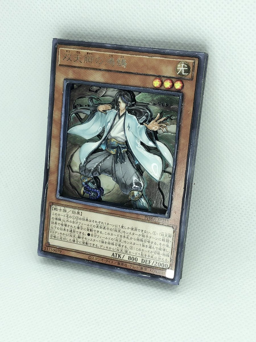シャドーボックス8作目! 双天脚の鴻鵠 マスターデュエルで双天デッキを作ってみたのですが楽しかったです! 久々のシャドーボックス! レジンの乗せ方や、断面処理用のペンを丁寧に教えてもらいました! #シャドーボックス #遊戯王