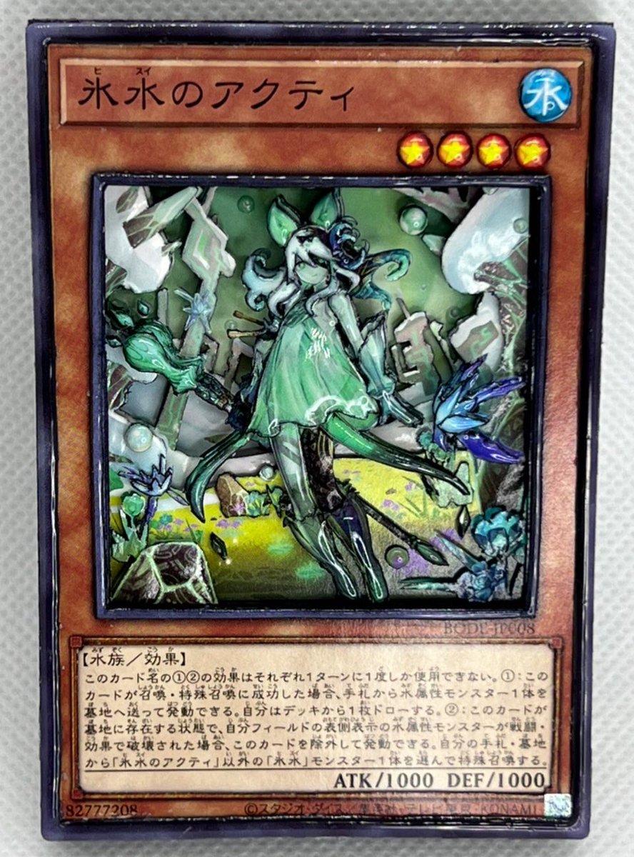 3 23 シャドーボックス9作目! 「氷水のアクティ」 一眼見た時からずっと作りたいと思ってたカードです! 今回はステキな企画に参加させてもらいますー! 子育ての合間だったけど間に合って良かった!!(*´∇`*) #けろんた杯 #シャドーボックス #遊戯王 22/09/14 15:20