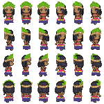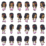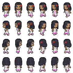 モブのキャラチップ作りました。 頭にハイビスカス付けてます。 宿屋の娘、マハロ。アイナの年の離れた妹。 #ドット絵 #ドットアーティスト
