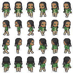 3 4 モブのキャラチップ完成! ダージリン。コーンロウとかいう髪型。 ディルの同僚、陽気な性格。 #ドット絵 #ドットアーティスト 22/04/18 18:07