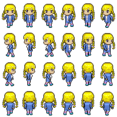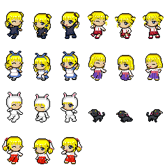 リリィ、プリシア等のモーションが出来たよ! モーションを絞ってるのと 仲間だけ作れば良いので、大丈夫そう。 #ドット絵 #ドットアーティスト