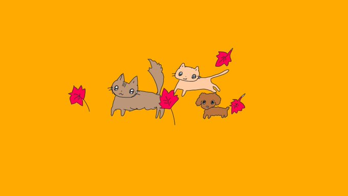 秋猫ちゃん🐱ワンちゃん #イラスト