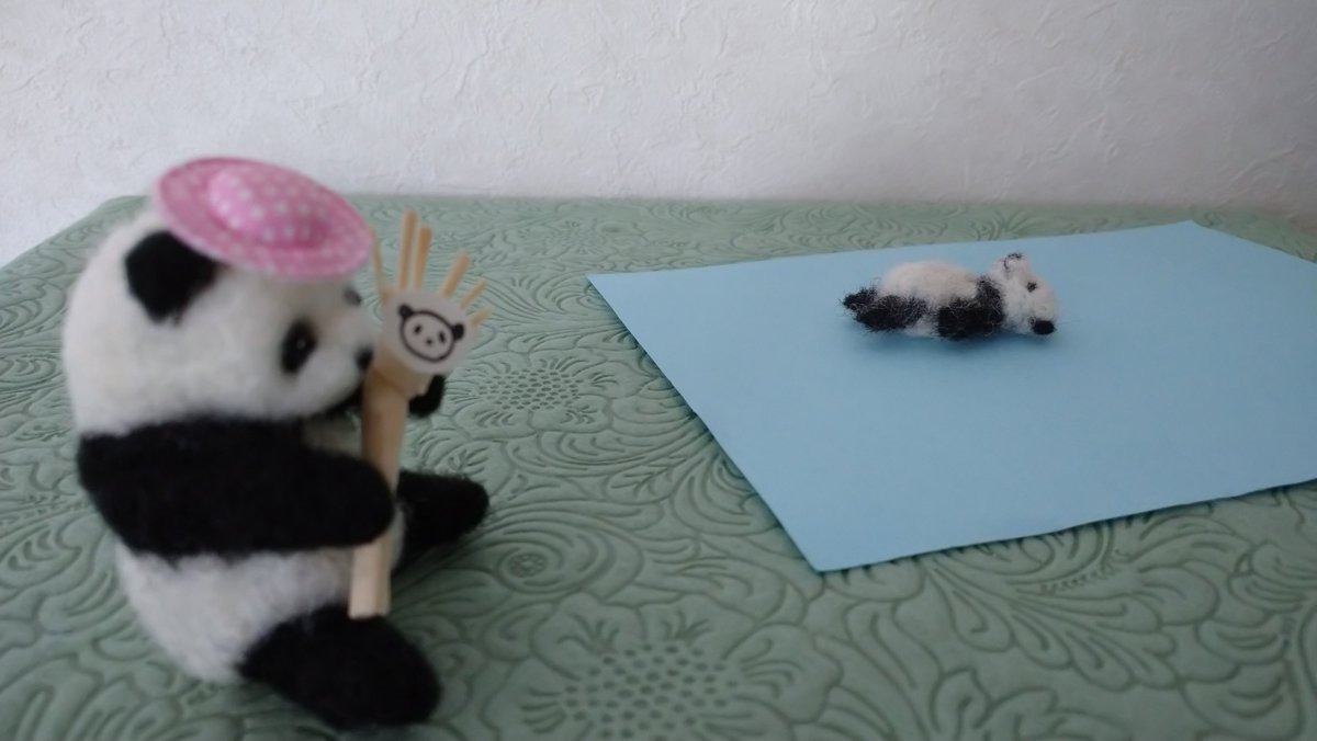 1 80 ぉゃちゅ🥐🍓買いにきまちた🎵 🐼ぱんだ が 🍞ぱん( ´罒`*)❣️ #シャンシャン #羊毛フェルト 22/01/31 16:20