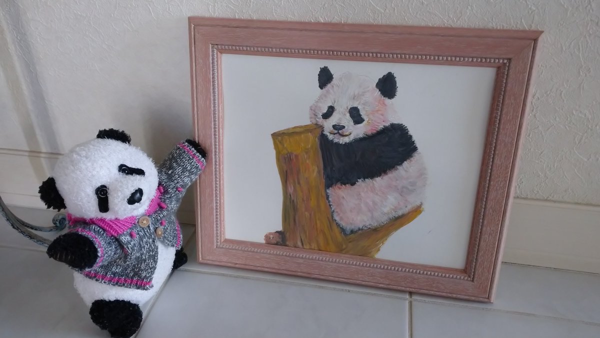 2 80 水彩画🐼シャン🎨額に入れてみまちた♪ちょれ ちょれ💕 (♡ˊ艸ˋ)♬.。.:*♡🐼🌳 #シャンシャン #お絵かき #水彩画 #パンダ 21/11/11 13:13