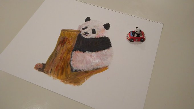 2 113 水彩画ちゃれんじ☆ちまちた🚗🐼 🎨🐼🌳木登りシャン💗(*´˘`*)♪ #シャンシャン #お絵かき #水彩画 #お子さまシャン 21/11/07 17:02