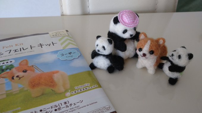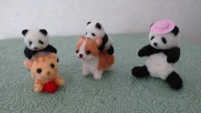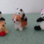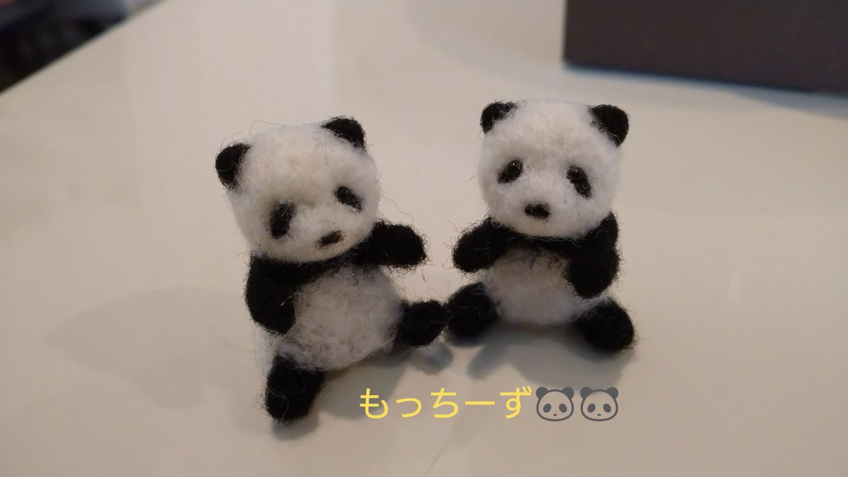 初めてキットセットで作ってみまちた🐶わん🐼🐼🐼わん🎵(*ฅ́˘ฅ̀*)💗 #シャンシャン #双子パンダ #今まで完全自己流 #羊毛フェルト