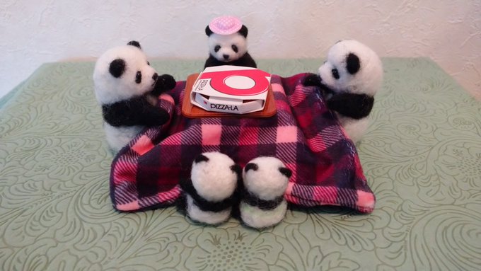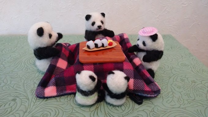 12 191 ちょと❗🍙かあしゃん‼️1コずつでしゅ‼️🐼🐼🐼🐼🍼🐼(ˊ˘ˋ*) きょーも 平和な 上野家でちた🍎 #シャンシャン #双子パンダ #羊毛フェルト #シンシンは食欲が止まらない 22/01/29 11:10