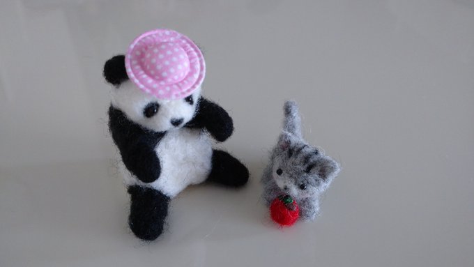 1 61 ねぇ ちょれ ぉでぃんごしゃん🍎じゃなぃでしゅか?🍎🐈️♡*゚ 🐼 #シャンシャン #羊毛フェルト #ねこ 22/03/19 11:16