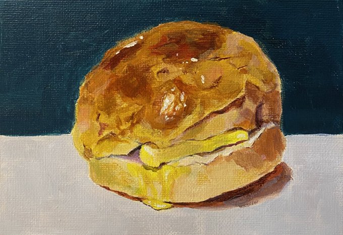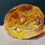 香港のパン、菠蘿油(ぼーろーやう)🥯甘いパンの間にどかっとバターが挟まっていて美味しい😋 Acrylic on canvas board. 4×4inchs. #acrylicpainting #illustration #foodpainting #hongkong #イラスト #アクリル画 #アナログ画