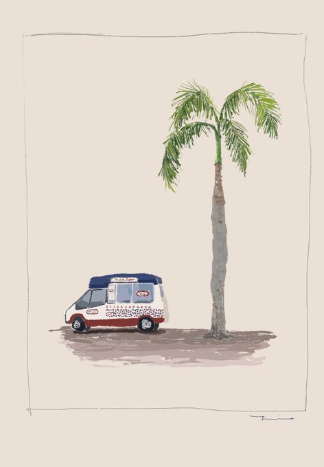 アイスクリームトラックとパームツリー🍦🌴 いつもアイス屋さんの車(雪糕車)から可愛い音楽がかかっています。 Icecream track and palm tree. #digitalart #illustraion #sketch #drawing #procreate #絵 #イラスト