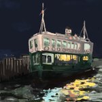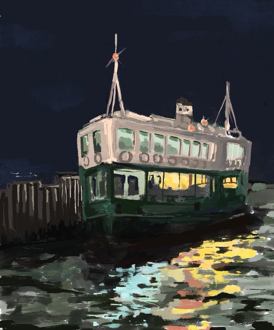 夜のスターフェリー🇭🇰🚢 Star Ferry at night. #HongKong #ferry #seascape #digitalpainting #digitalart #procreate #sketch #デジタルイラスト #イラスト