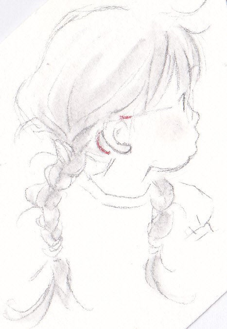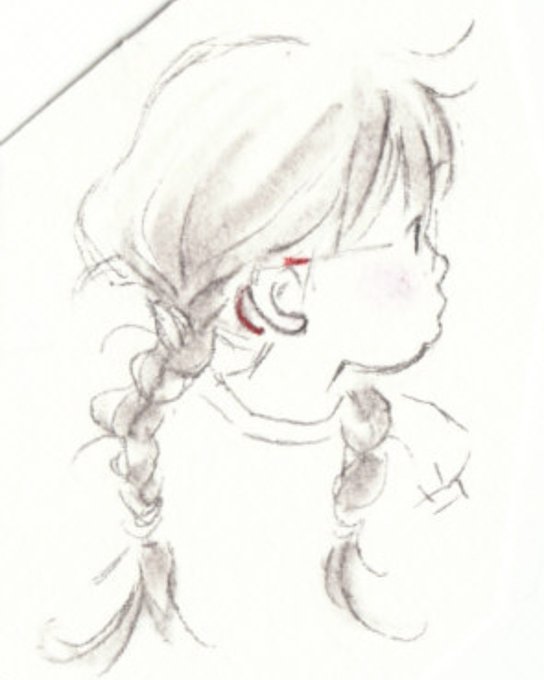 ずっと前にらくがきの隅に描いた子 この子をまたいつか描きたいなと長い間思ってる子 #イラスト #女の子 #みつあみ #子ども #さし絵