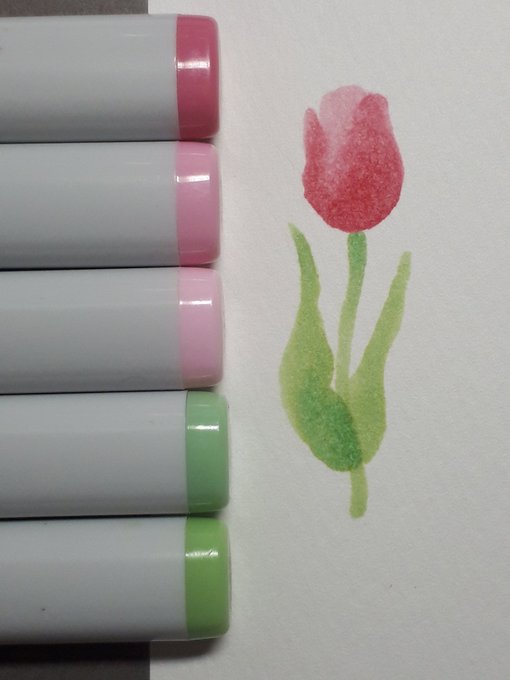 ホワイトワトソン紙にコピックをテスト なかなかきれい #イラスト #さし絵 #チューリップ #コピック #copic