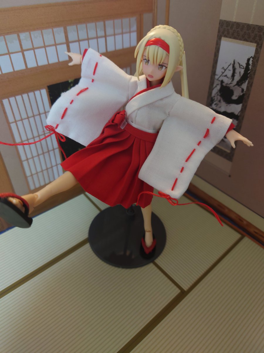 巫女服です! 首の襟元のこだわりと、可動域を意識しました。 #メガミデバイス