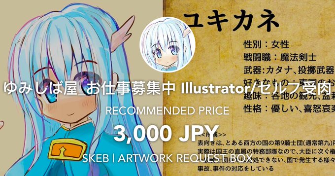 【Skeb募集】 営業都合により 就労までの期間が空き、未収益の期間が発生してしまったので Skebの募集をしようと思います リクエスト頂けるととても嬉しいです (版権NGです💦) この様な絵を描いております 1、2枚目:オリジナルキャラクター 3枚目:Vtuberの方のファンアート skeb.jp/@yumishibaya