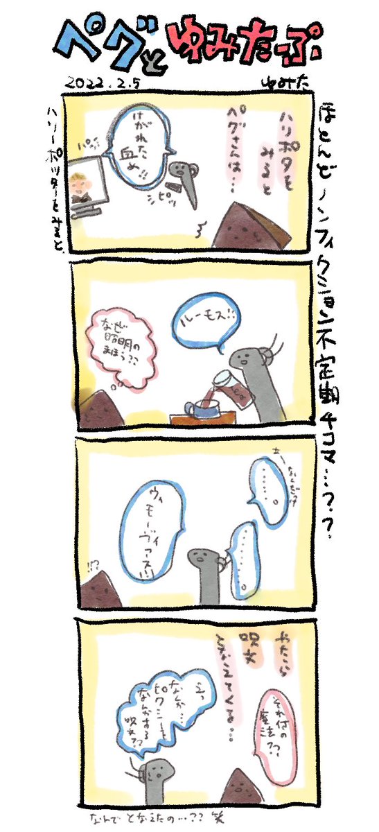 1 10 ペグとゆみたーぷ⑥ ハリポタの金曜ロードショーの録画を急に観たくなって、観た後の現象。 #ペグとゆみたーぷ #金曜ロードショー #ハリポタ #漫画が読めるハッシュタグ #4コマ #4コマ #4コマ漫画 #4コママンガ 22/02/05 21:10