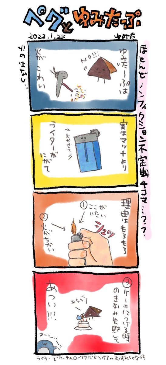 0 10 ペグとゆみたーぷ④ 続・実はにがて。 #ペグとゆみたーぷ #ライター #漫画が読めるハッシュタグ #4コマ #4コマ #4コマ漫画 #4コママンガ 22/01/28 04:45