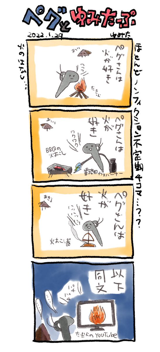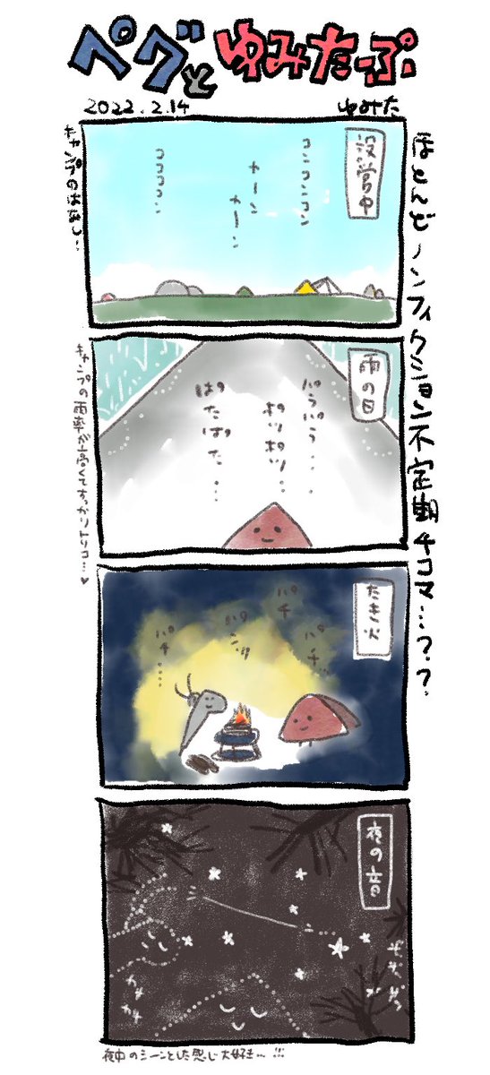 1 9 ペグとゆみたーぷ⑨ キャンプの好きなところ。 #ペグとゆみたーぷ #キャンプ #冬キャンプ派 #漫画が読めるハッシュタグ #4コマ #4コマ #4コマ漫画 #4コママンガ 22/02/14 20:38