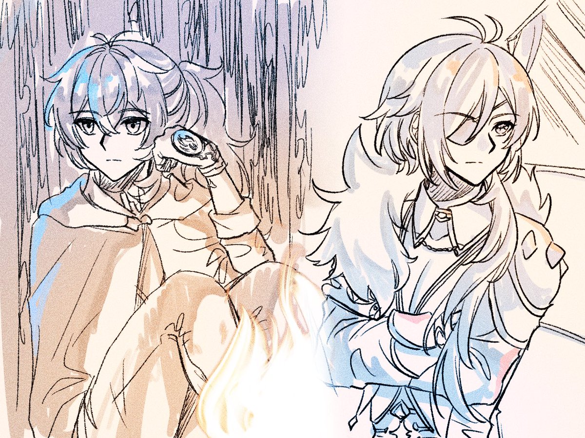 #ガイディルワンドロワンライ 「いつの間にかお前/君のことを考えている」 使用お題【ぼんやり】 (掲載URL等) ・作成日時 5/14 22:00〜23:15(+15分) ・少し暗い ・🔥の放浪中の衣装を捏造しています(邪/眼使用時の服に寄せてる)