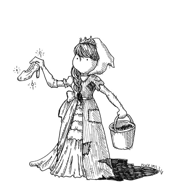 14 339 シンデレラ 2023.3.28 (#一日一絵 2,494日目) #illustration #art #イラスト #ペン画 23/03/28 22:15