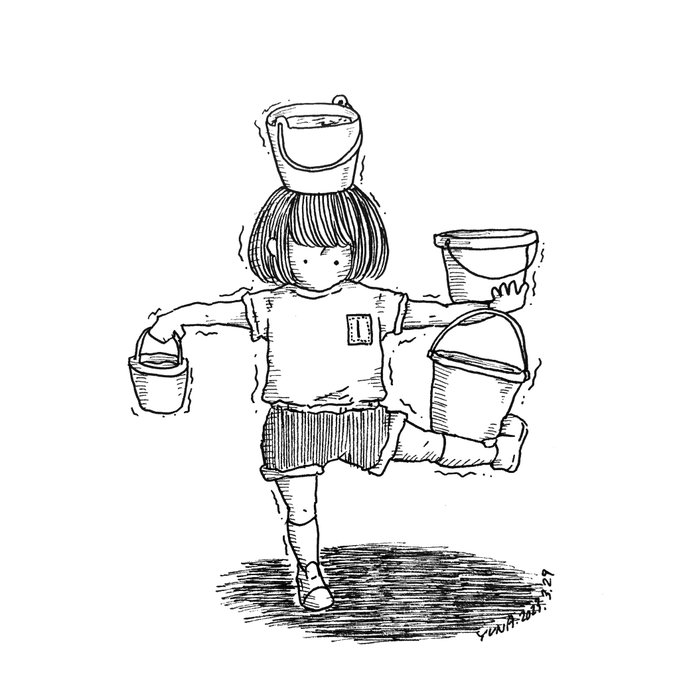 1 8 バケツを極める 2023.3.29 (#一日一絵 2,495日目) #illustration #artwork #イラスト #ペン画 #drawing 23/03/29 22:36
