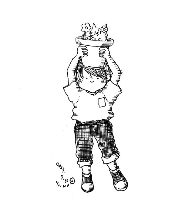 2 18 ネコ、咲いた! 2023.3.30 (#一日一絵 2,496日目) #illustration #イラスト #ペン画 23/03/30 22:22
