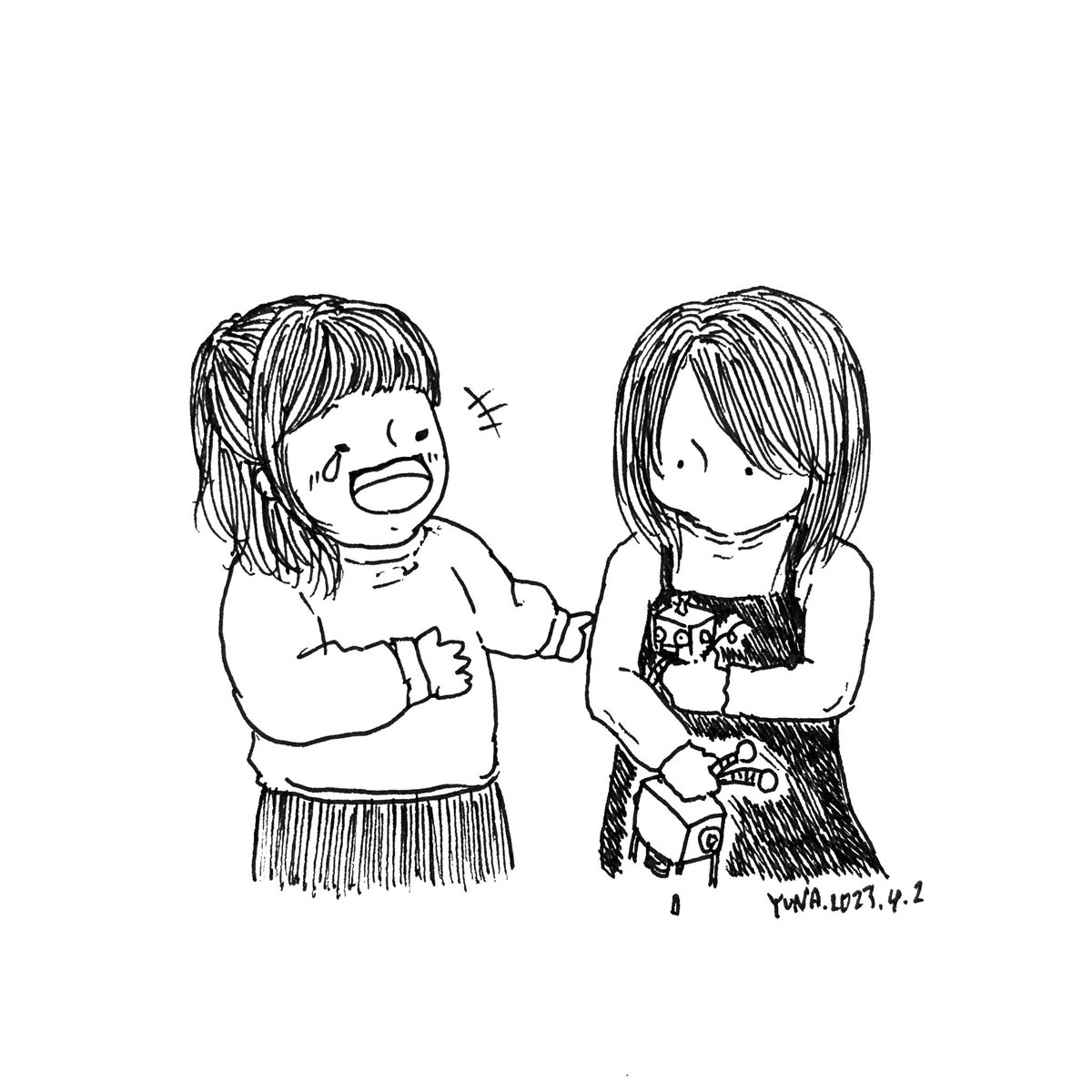 "楽しい"と"苦しい"の姉妹 2023.4.15 (#一日一絵 2,512日目) #illustration #artwork #イラスト #ペン画
