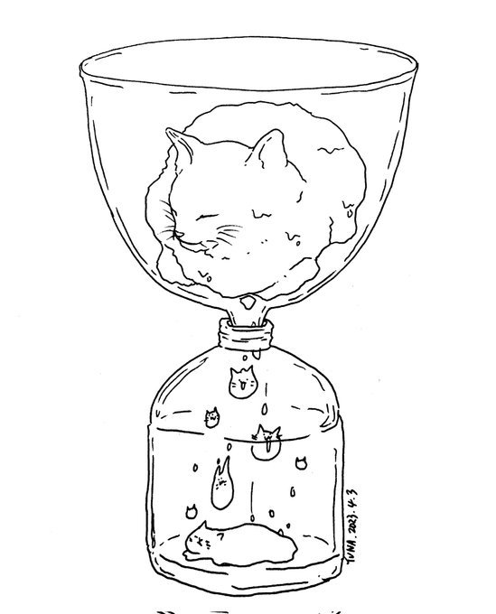 1 19 猫は液体か、検証実験。 2023.4.3 (#一日一絵 2,500日目) #illustration #イラスト 23/04/03 22:25