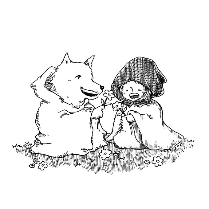 0 10 赤ずきんちゃんと優しいオオカミ 2023.4.8 (#一日一絵 2,505日目) #illustration #art #イラスト #ペン画 #drawing #線画 23/04/08 22:42