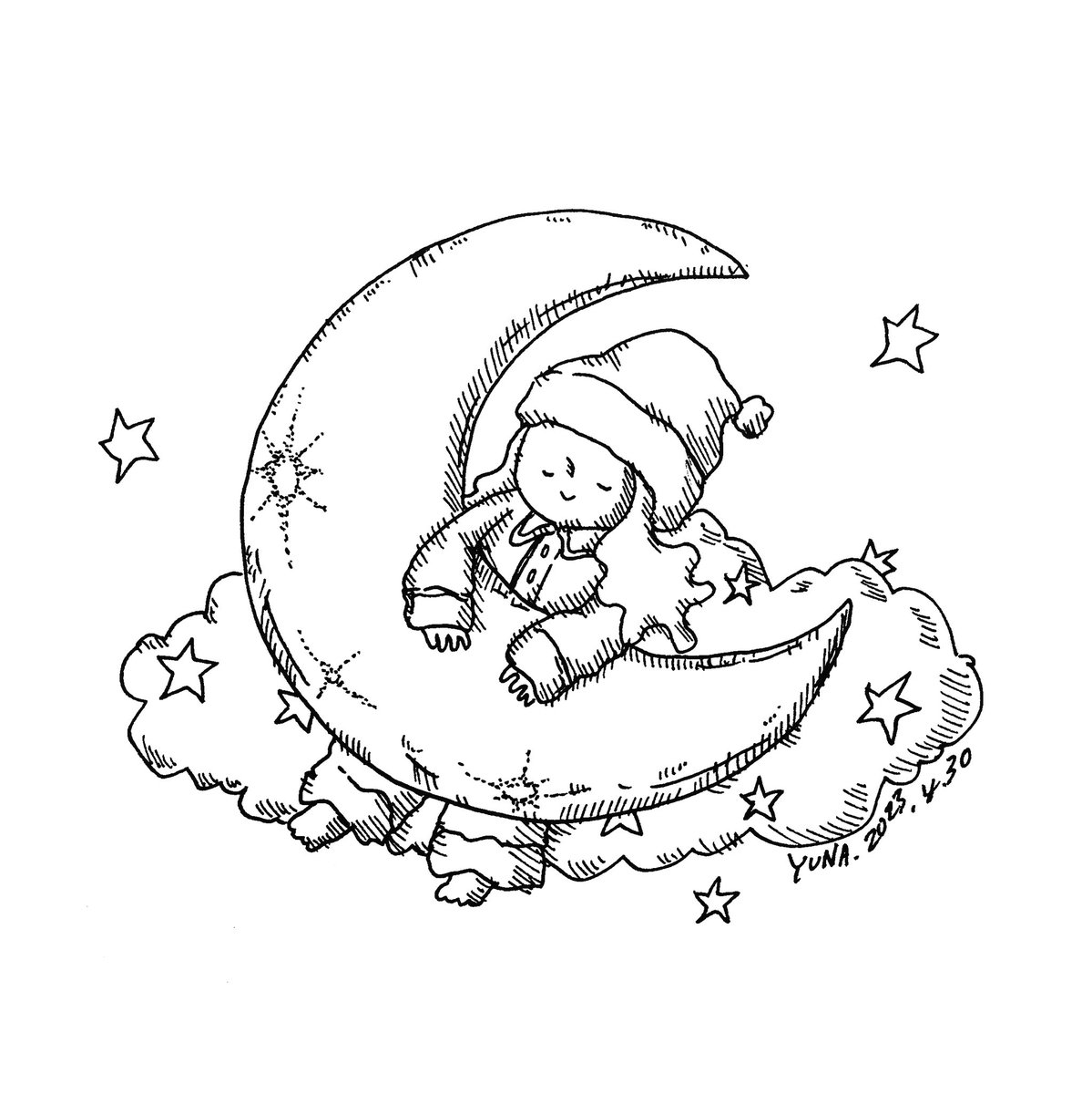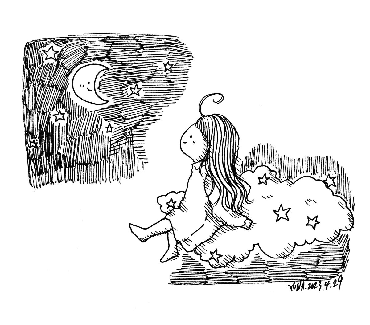 月夢 2023.4.30 (#一日一絵 2,527日目) #illustration #art #イラスト #ペン画