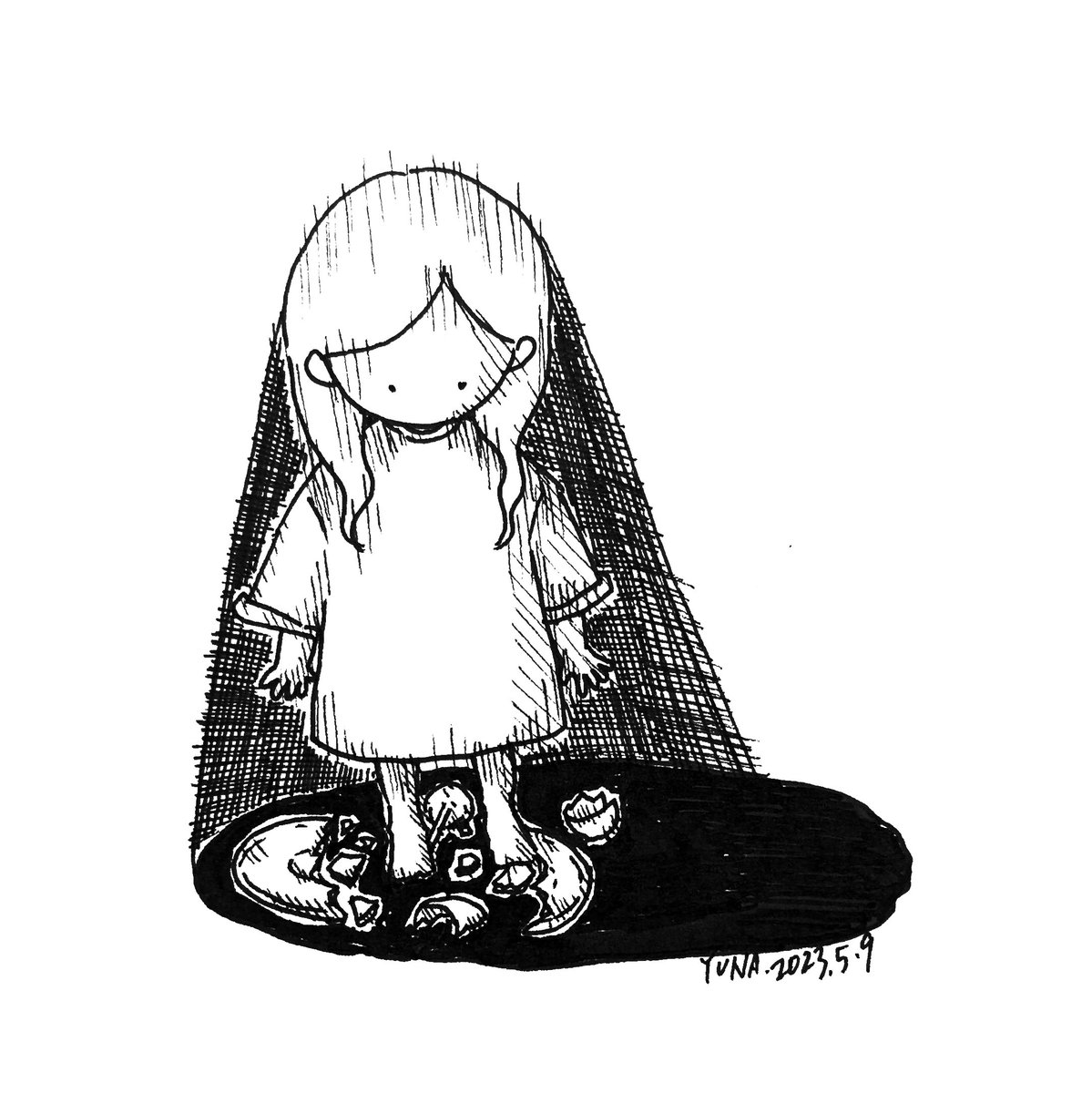 0 10 簡易絶望 2023.5.9 (#一日一絵 2,536日目) お皿を割ってしまった時に感じる一瞬の絶望感。 #illustration #art #イラスト #ペン画 #線画 23/05/09 22:28