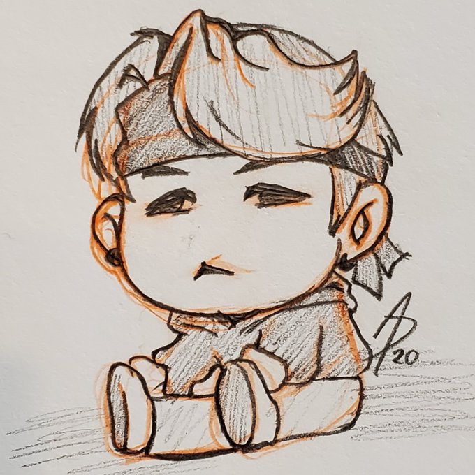 Lil Joonie found his favourite bone while in the Soop. (can decide if I like him with or without glasses) #artmytober #artmytoberday4 #artmytober2021 #inktober #inktober2021 #bts #btsfanart #namjoon #rm