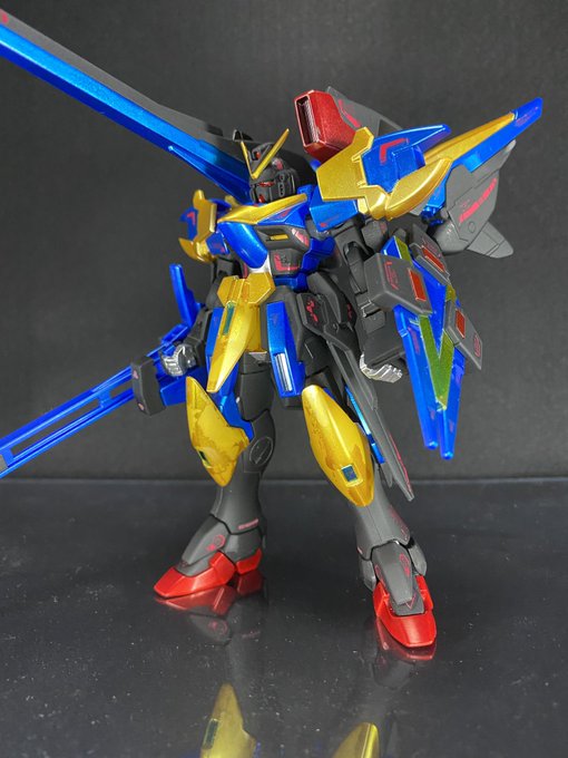 完成! つや消しブラック+光沢メタリック最高! 全体的にはもう少し黒多めの方がメタリックが映えそう 塗装剥げは気にしない方向で #ガンプラ #ガンプラ初心者 #ガンプラ好きと繋がりたい #ガンプラの画像貼るとRTされると聞いて #ガンプラはどんな自由な発想で作ってもいいんだ #アサルトバスター
