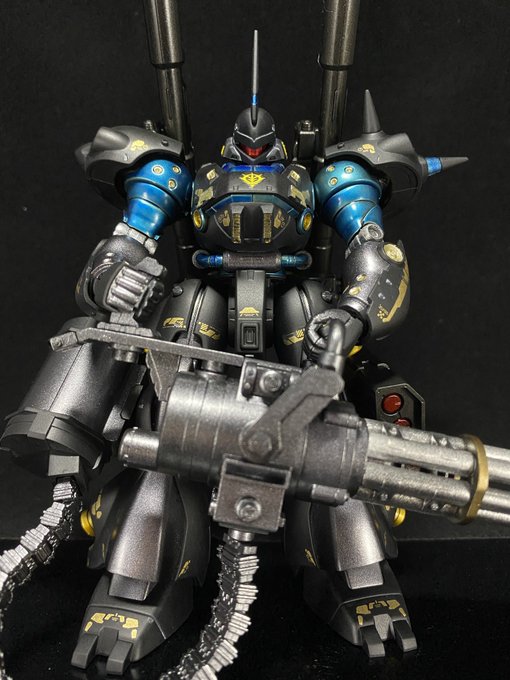 HGケンプファー完成!! つや消し黒×メタリックは最高 ガトリングもカッコいいけど、重くてポーズが取りづらいのが難点 …そしてチェーンマイン忘れてた… #ガンプラ #ケンプファー #ガンプラ好きと繋がりたい #ガンプラの画像貼るとRTされると聞いて #ガンプラはどんな自由な発想で作ってもいいんだ