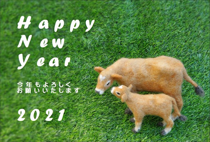 *Happy New Year* ステキな1年になりますように💖 いつもギリギリで遅れぎみな私ですが、今年もどうぞよろしくお願いいたします😊 #happynewyear #明けましておめでとうございます #2021年 #丑年 #ジャージー牛 #羊毛フェルト #ニードルフェルト #woolfelt #ロコ #loco #LocosFelt