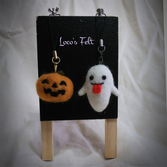 羊毛フェルトの体験講習見本 ハロウィンストラップ🎃👻 どちらかお1つ作れます。 告知が遅すぎですが、まだ来週間に合います 笑! #羊毛フェルト #クラフトハートトーカイ我孫子南口店 #ハロウィン
