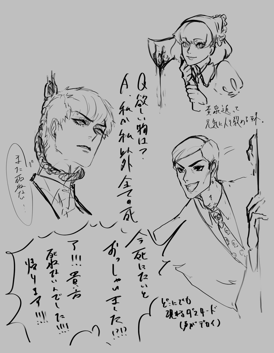 ならちゃんの #ロ兄霊アンソロ で描かせていただいたマヒトチャンと🧠と宿儺様…生存報告にこっちでも上げる…