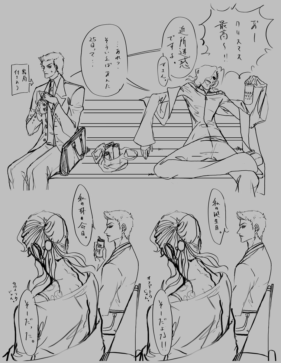 オチも何もないメリクリ滑り込み落書き 唐崎誕生日でした。