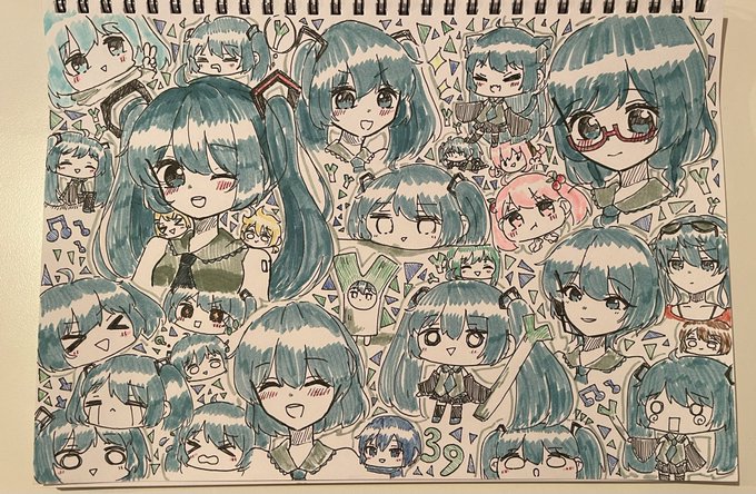 色んなミクちゃん描きました!! (めちゃくちゃ疲れた、けどめっちゃ描くの楽しかった) #初音ミク #イラスト
