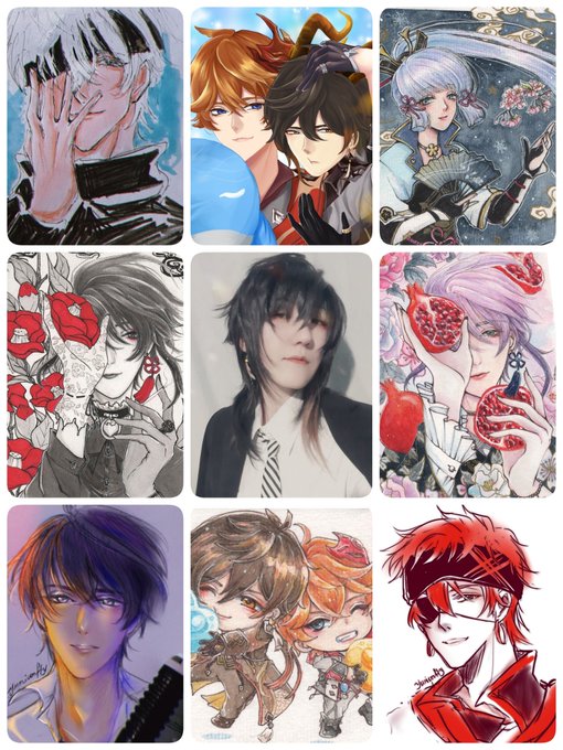 Esse ano sinto que melhorei muito nas artes 😭💙 (e meu cospobre de Zhongli pq num tenho foto normal kkkk) #artvsartist2021
