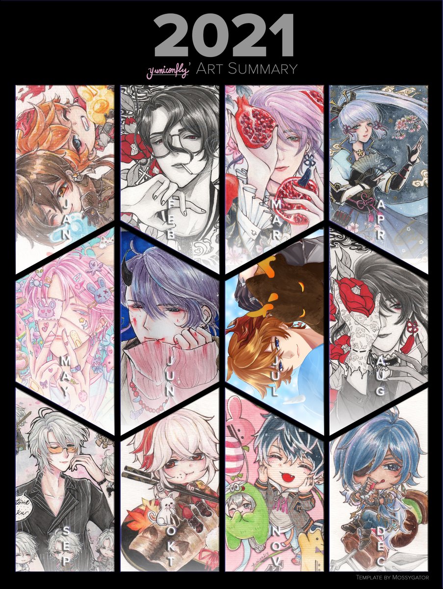Esse ano felizmente desenhei muuuuuita coisa mas ainda to 10% digital pra 90% tradicional, espero pelo menos chegar nos 50% de cada ano que vem 💪 e treinar mais anatomia ;;;;;;; #Artsummary2021