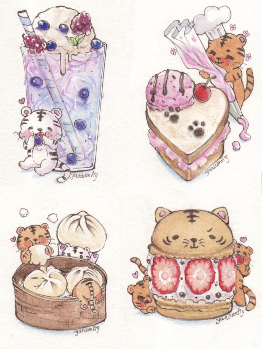 ✨Versão normal e chibi✨ realmente não sei se tenho algum estilo ~ :'D mas percebi que vivo desenhando personagens com comidas ou abraçado a bichinhos (ou comida tb) hsuahushaus #faceyourart