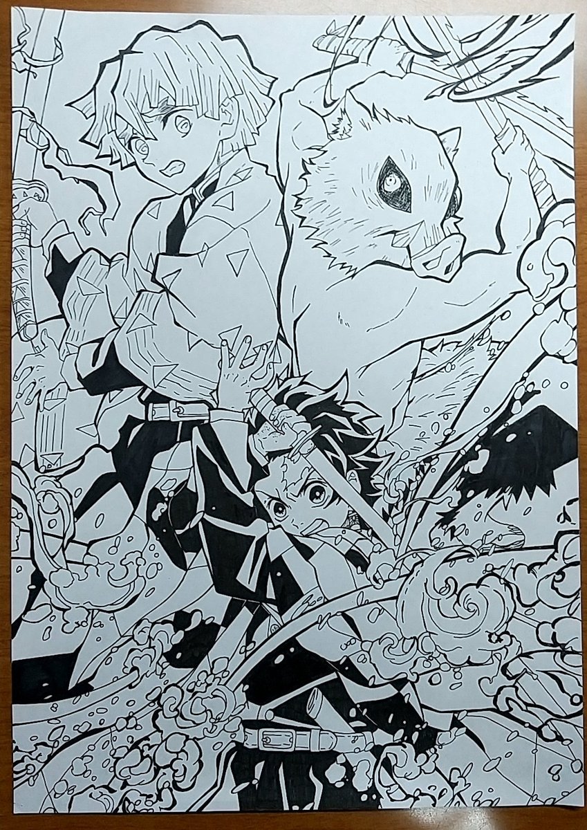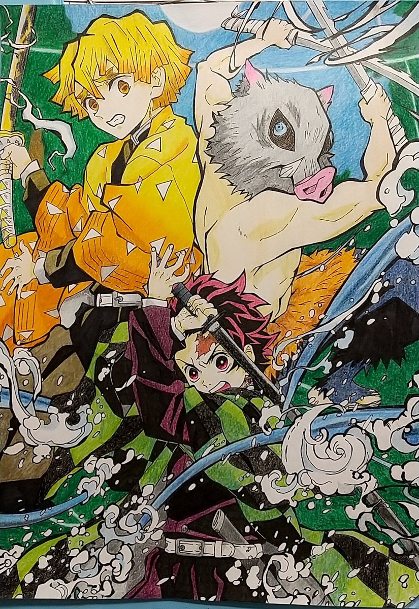 かまぼこ隊描けました!(2回目) ムラ満載ですねぇ🤔 色鉛筆で色塗りしました 塗る前…2枚目 1回目見たい人っているのかな笑 リプに初有 #鬼滅の刃絵描きさんと繋がりたい #絵描きさんと繋がりたい #少しでもいいなと思ったらRTorいいね #竈門炭治郎 #我妻善逸 #嘴平伊之助 #かまぼこ隊 #色鉛筆