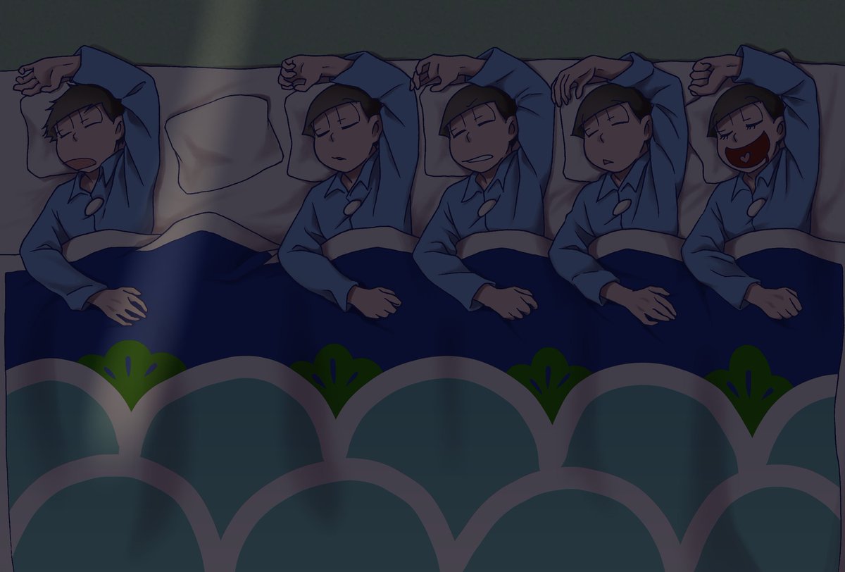 トイレに行きたくなって起きたらブラザー達が皆同じポーズで寝ていた 凄いな…