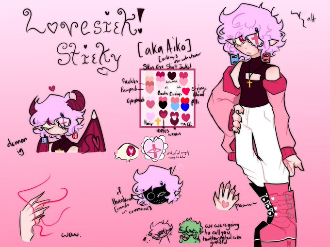 anyways while the competition goes on meet lovesick sticky !! also known as aiko i dont have much to say other than im nervous to see how people react to him [ since he doesnt follow a lot of sticky designs thus being more noticeable ] so lmao [ #stickybmfanart ]