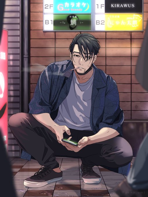待ち合わせする尾くん。たぶんこの後飲みに行く。 (路上🚬はしちゃいけません)